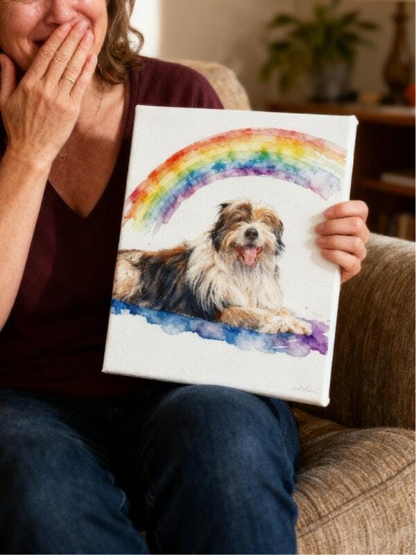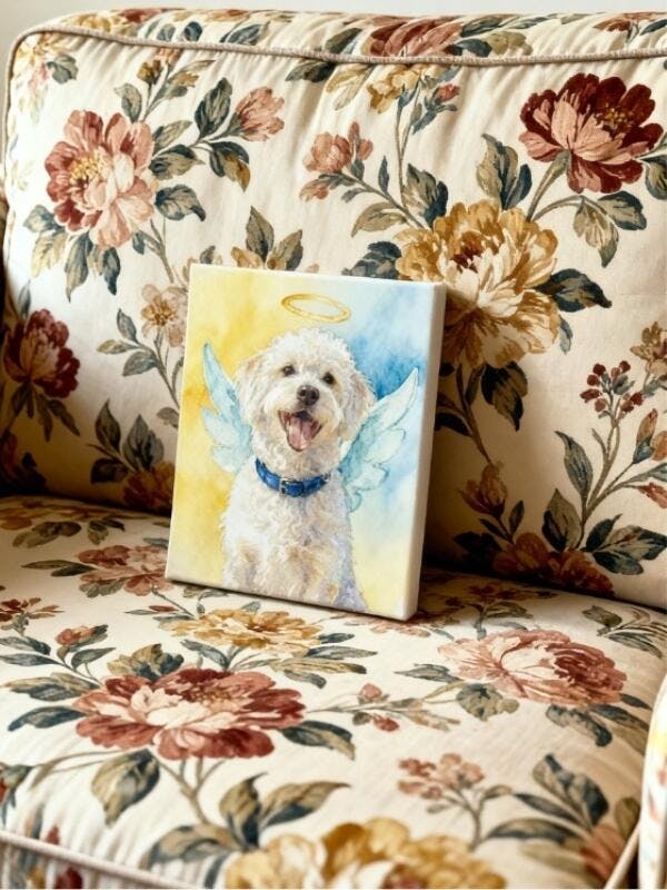 I lost my soul dog, and in the middle of trying to find something - anything - to ease the grief, I came across this portrait through a search. It turned out to be exactly what I needed. Seeing Cooper as a happy angel brings me so much comfort. The artist did an amazing job capturing him from the photo I sent. I’m really grateful. Thank you.